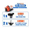 Thanks to a large 5-chamber diaphragm pump, the Seaflo 12V 55 Series Heavy-Duty Diaphragm Water Pump delivers high-volume water flow with reduced pump cycling. This 4A water pump moves 5.5 gallons per minute and self-primes up to 6'. You can use it for continuous duty or on-demand use, and safely run it dry. It's also suitable for holding-tank water systems on a boat or in an RV. Built-in pressure switch automatically starts and stops the pump when the faucet is opened and closed. Other highlights include quiet operation, easy-connect fittings, industry-standard mount pattern, and built-in thermal protection. Top-quality construction details include EPDM valves, Santoprene diaphragm, and 16 AWG wire. Comes with 2 straight barbed fittings and 1 inline strainer. 1/2"-14 MNPT ports. Manufacturer's 4-year warranty.