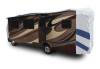Designer Series UV Hydro RV Covers provides RV's with maximum protection against ultraviolet light and water. The new 4-layer fabric is tear resistant and has a hydrophobic, UV-resistant coating. New design Innovations include a 'red leading edge' to expedite cover installation by helping users quickly locate the front side, zippered panels to allow extension of slide-outs with the cover on, slip-seam wind channels to ensure a snug fit, includes 4 gutter spout covers to prevent damage from rainspouts. UV Hydro Covers have a three-year manufactures warranty.