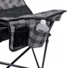 This chair has supreme comfort and ample space to kick back and relax. This fully cushioned seat includes a convenient insulated drink holder. Rated for 350lbs.  Durable ribbed 600D polyester.  Sturdy 3/4" black tube frame.  Stabilizer feet.  Padded back & arm rests.  Insulated beverage holder and phone pocket.  Carry bag not covered under warranty.