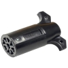 Contains 9 high capacity solid round terminals similar to those in heavy truck usage. Longer terminal pins guarantee maintaining engagement. No possibility of molding compound contaminating contacts to cause "dead spots". Floating pins, standard for the trucking industry, are self-aligning offering continuous wiping action and the most positive contact. Terminals are one piece construction for best conductivity. New applications require 12 volts. Contacts on both trailer and car side spring loaded.