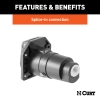 Like trailer hitches and ball mounts, electrical connectors range all over the board in shape, size and capability, but no matter what your trailer's electrical functions are, you need a solid connection to keep the power flowing and ensure safety on the road. CURT electrical connectors are designed and manufactured to give you a reliable connection every time you plug in your trailer. This 7-way round RV blade connector is designed to supply power for tail lights, turn signals, electric trailer brakes, a 12-volt battery, reverse lights and brake lights, as well as a ground connection. It features rust-free black plastic construction and comes with a spring-loaded cover to keep out dust and water. This 7-way round connector is a female-end socket, specifically designed for the vehicle side of the connection. 7-way RV blades are typically used on RV travel trailers, and this particular connector can be easily interchanges with other 7-way RV connectors.