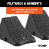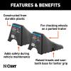 To ensure safety, a vehicle's parking brake should not be the only thing to keep the weight of the vehicle and trailer in place, especially if they are parked on any kind of incline. CURT wheel chocks are designed to be used together with the emergency brake to stop your vehicle from moving. They are constructed from durable plastic and offer a generous 17" width. This allows them to be used with a variety of wheel and vehicle sizes, though they should never be used for commercial applications. CURT wheel chocks also feature a raised tread to better grip the wheel and saw-tooth edges on the base for better traction on the ground.