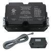50a Surge Protector With Voltage Protects against high/low voltage problems, incorrect AC wiring, and power surges, while the built in display continually scrolls, showing line voltage, current, frequency, and error message. EMS shuts down power if AC source drops below 104V or rises above 132V, automatically restores it once power is between 104V-132V after 136 second delay. Power is also shut down if AC outlet is wired incorrectly, or 220V is detected on the 120V power line(s). The error message notes AC power condition. 50 amp models have 750 joules, and 4-mode protection. Surge light denotes condition of surge circuit. Controller dim: 9"L x 5"W x 4"H. Remote dim: 3"L x 2"W x 1"H. 3 yr. warranty