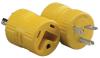 Use to connect standard 30A RV cordset to generator equipped with 20A straight blade receptacle (5-20P). Allows more amperage draw than standard 15A adapters. One-piece unbreakable housing. Weather resistant construction.