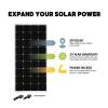 As your need for power grows, so can your RV solar system by adding additional modules to your existing Solar Kits or even to the Weekender ISW and Solar Elite charging system. Each Go Power! expansion kit includes a solar module, mounting hardware and expansion connections to quickly connect to the existing solar module on your RV roof. All Go Power! Solar Expansion kits are compatible with one another - 100 watts or higher.
