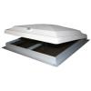 Fresh air ventilation: A turn of the crank provides a large vent area. Lets air through, keeps insects out. Sturdy frame installs easily. Dependable operation featuring leak-resistant lid and weather-tight frame. Includes opaque white plastic lid. 22" x 22" metal frame with 4 piece 2" white metal garnish.