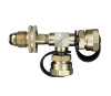 This Propane Adapter Tee has a soft nose POL inlet connection with handwheel which fits all standard L.P. gas cylinder valves. The outlets of the tee are both 1"-20 male fittings with valve o-ring seal and brass safety caps. The tee permits two appliances to be operated from a single fuel source. POL X Male 1"-20 X Male 1"-20 Tee.