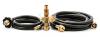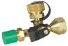 Propane tee (Female P.O.L. x excess flow soft nose P.O.L. x 1"-20 male throwaway cylinder thread x 1/2" inverted flare.