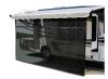 Don't put up with the heat and glare of early morning or late afternoon sun. The EZ ZipBlockers weather resistant open-weave fabric cuts almost 85% of light to keep you cool and comfortable - but it doesn't block your view! Fabric construction is a woven 100% polyester with a durable vinyl coating. It slips quickly and easily into the open slot on most awning roller tubes and the top portion can stay in the tube for storage. The insert slides into the awning roller and rolls up with the awning (insert must be removed on awning's with springs). This allows you to reach the zipper without a ladder. When you set up again, simply zip the body panel into the insert. Grommets and ground stakes included. All Black. 15' wide. 9' drop has a 3' insert.