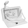 Get the convenience of hot and cold running water for outdoor showering, tool washing, or fish cleaning. Hatch is fade and impact resistant, and paintable. Code approved vacuum breaker. Key lock ensures security. Includes hot/cold valve, head, 60" hose and bracket. UV stabilizer added to prevent fading. Recessed section: 10-3/4"W x 5-3/4" H x 3-1/16" D. Cutout Dimensions: 11"W x 6" H.