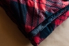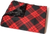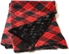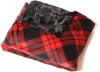 Luxurious plush throw 50" x 60". 100% polyester. One side minky red and black buffalo plaid pattern reverses to a velvety-soft solid black color faux fur.