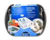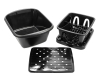 3-piece set includes dishpan, dish drainer with tray and sink mat. Miniature size perfect for galley sinks. Products nest together for compact storage. Dish Drainer holds plates, cups and utensils for up to six people. Dish drainer tray doubles as a lid.