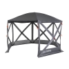 Super Bear Den Deluxe Gazebo is now updated with a 6 foot door opening, height increase of 6' 6"! Reinforced steel door frame with reinforced base corner stitching. 230T Polyester (450mm/UV50+), mesh walls. Fully taped seams on roof. Large roll up wall entrance. Privacy Panel walls available, not included. Pegs, guylines and carry bag included. Carry bag is not covered under warranty. Carry bag measures 5' 6" L. 86 square foot footprint. 11' 6" (L) x 9'10" (W) x 8' (H). Weighs 28 pounds. Grey/Orange.