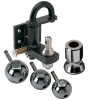 A spring-loaded, double-engagement latch which locks through the pintle ring for increased strength and reliability. Both an automatic rust-proof latch lock and a manual safety pin insure safe hookups. Quick conversion from pintle hitch to ball hitch to clevis hitch without the need for tools. Forged stainless steel shank with 1-7/8", 2", and 2-5/16" interchangable stainless steel coupler balls. Latch self-parks so it cannot interfere with the coupler during hookup and towing with ball couplers. Gross trailer weight ratings to 25,000 pounds.