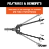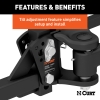 Integrated sway control actively resists sway and levels the vehicle and trailer. Four points of sway control work together to keep trailer aligned. Welded head with cast pieces and trunnion-style forged steel spring bars. Uses spring & cam system with hardened components, instead of friction alone. Adjustable brackets provide fixed support unlike spring bar chain models. Brackets use friction to resist lateral movement, replacing a sway control. 2" shank can be flipped to provide necessary drop or rise. Hex castle nut allows for easy adjustment for different trailers. Fits virtually all A-frame trailers, featuring two neutral spring bar settings. Carbide black powder coat, black-oxide-plated cams and stainless steel balls. Includes a pre-torqued 2-5/16" trailer ball. Limited lifetime warranty (one-year finish, one-year parts). Springs bars can be adjusted to 30 or 70 degrees (+/- 5). Includes shank, trailer ball, spring bars, head, support brackets, pin & clip.
