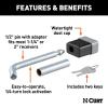 CURT hitch locks allow you to lock your ball mount into your trailer hitch, deterring theft and preventing anyone from detaching your trailer at the ball mount and towing away your property without your permission. This CURT hitch lock features a deadbolt design and comes with a 1/2" pin diameter with a 5/8" diameter adapter sleeve. This allows it to be used on either a 1-1/4" or 2" receiver tube size. CURT deadbolt hitch locks have a solid, square-shaped lock mechanism and a bent handle for easier gripping. They are key-operated and activate with a simple 1/4-turn. They also come with a watertight dust cap to keep out the elements and prevent corrosion.