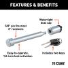 Make your tow vehicle and trailer more secure by keeping them locked up tight with a CURT hitch lock. Like a hitch pin and clip, a hitch lock is designed to insert into the fastener hole in the side of a receiver tube in order to hold a ball mount or hitch-mounted accessory in place. While a CURT hitch pin does offer sufficient strength for keeping your ball mount firmly attached, a CURT hitch lock goes one step further.CURT hitch locks allow you to lock your ball mount into your trailer hitch, deterring theft and preventing anyone from detaching your trailer at the ball mount and towing away your property without your permission. This CURT hitch lock features a barbell design and comes with a 5/8" pin diameter to fit a 2", 2-1/2" or 3" receiver tube size. CURT barbell hitch locks are comprised of a pin with two end caps and a round locking mechanism. They are key-operated and activate with a simple 1/4-turn. They also come with watertight dust caps to keep out the elements and prevent corrosion.For the ultimate in towing security, a hitch lock and coupler lock used together will provide security at both the vehicle-side and trailer-side of your towing setup. For your boat, ATV or camper, keep your toys more secure with CURT hitch locks.