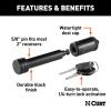 CURT hitch locks allow you to lock your ball mount into your trailer hitch, deterring theft and preventing anyone from detaching your trailer at the ball mount and towing away your property without your permission. This CURT hitch lock features a barbell design and comes with a 5/8" pin diameter to fit a 2" receiver tube size (usable pin length is 2.850"; will not work with double-walled receiver tubes). CURT barbell hitch locks are comprised of a pin with two end caps and a round locking mechanism. They are key-operated and activate with a simple 1/4-turn. They also come with a watertight dust cap to keep out the elements and prevent corrosion.