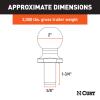 Whether you are towing gear out into the field or just getting some yardwork done, CURT ATV tow balls and lawn tractor hitch balls are the perfect addition to your four wheeler, side-by-side or lawnmower. They feature industry-standard dimensions, a tested towing capacity and a durable construction to withstand the outdoor elements.This CURT ATV tow ball / lawn tractor hitch ball has a 2" ball diameter. This standardized dimension will fit virtually any 2" trailer coupler, including small utility trailers, gear haulers, landscaping trailers, teardrop campers and much more (capacity limited to lowest-rated towing component). The trailer ball comes with a 1-3/4" x 5/8" shank to easily and securely drop into a lawn tractor tongue or ATV tongue or even a ball mount. It fastens securely with the included nut and lock washer.This CURT hitch ball is rated to tow up to 2,000 lbs. GTW. This rating is stringently tested according to U.S. VESC V-5 specifications to ensure safety and dependability. The trailer ball is constructed from hot-forged steel for solid strength, and it features fine threads on the shank to increase the holding strength. This trailer ball is perfect for ATVs, UTVs and lawn tractors alike. However, remember that the 2,000-pound rating is limited to the lowest-rated towing component.To help the CURT ATV tow ball or lawn tractor hitch ball stand up to the elements, it comes with a durable finish. The hot-forged steel is shielded in a bright chrome plating that helps resist rust and corrosion in spite of rain, dirt, mud and snow. Whether you're embarking on a deep-woods hunt or working hard on the landscaping, this trailer ball is engineered to keep up and offer reliable towing.
