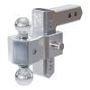 The AlumaLite aluminum drop hitch with dual ball balances strength with weight savings to make towing and leveling a trailer easier than ever. The lightweight billet aluminum makes handling and installation of the shank straightforward and simple. The shank allows for 5-1/2" of drop in precise, 1" increments, making raising or lowering the 2" or 2-5/16" ball convenient and easy. The AlumaLite aluminum drop hitch is also universally compatible with a 2" x 2" hitch receiver with 5/8" hitch pin holes.