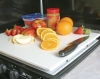 Quiet stove top rattle and add much-needed counter space in your RV kitchen. Sits directly on stove top grates or over an existing stove cover. Stays firmly in place with non-skid backing. Durable polyethylene cleans easily with soap and water. Patented. 17" x 19-1/2" x 1/2".