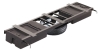 A great way to increase storage and ease of accessibility for your cargo. Keep maintenance supplies, tools, cords and other cargo safely and securely underneath the frame of your coach. By disengaging the spring loaded latch, the unit easily slides out for easy acess to your stored cargo. An optional spare tire carrier makes this product even more useful and convenient. Anyone who has had to change a coach tire knows that easy acess to the spare tire saves time and energy. To access the spare tire, simply slide the unit out, lift out the storage bin and the spare tire will slide to within reach. Spare tire option includes tire winch. Powder coated side channels protect against the elements. Unit includes two detachable molded storage boxes with lids. Store up to 100lbs in each bin. Unit Dimensions: 99.5" L, 19.125" W, 8.277" D. Storage bin Dimensions: 27.875" L, 17" W, 8" D.