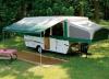 Poly cord sewn in bag slides into awning rail. All parts stow in zippered bag. Adjustable support poles. Spring loaded tension rafters. 7' extension. Length = end of bag to end of bag. New click lock poles.